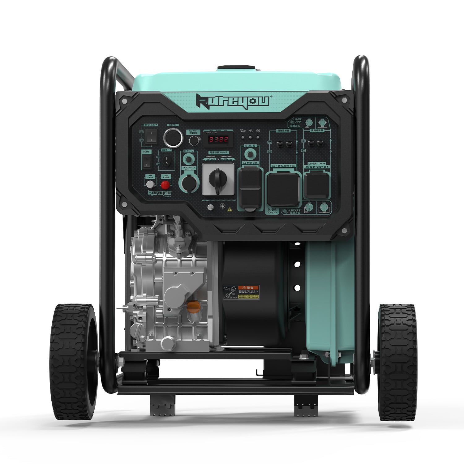 ③【ワンプッシュ&リモコン始動】直感操作+電圧切替スイッチ・節能スイッチ搭載 電源パネルには ワンプッシュ始動ボタン、リモコン受信部、電圧切換スイッチ(100/200V)、節能モードスイッチ を分かりやすく配置。 初めての方でも操作しやすく、女性や高齢者でも扱えるユーザーフレンドリー設計です。 また、予熱機能により –20℃でも確実にエンジン始動 でき、非常時に強い構造になっています。