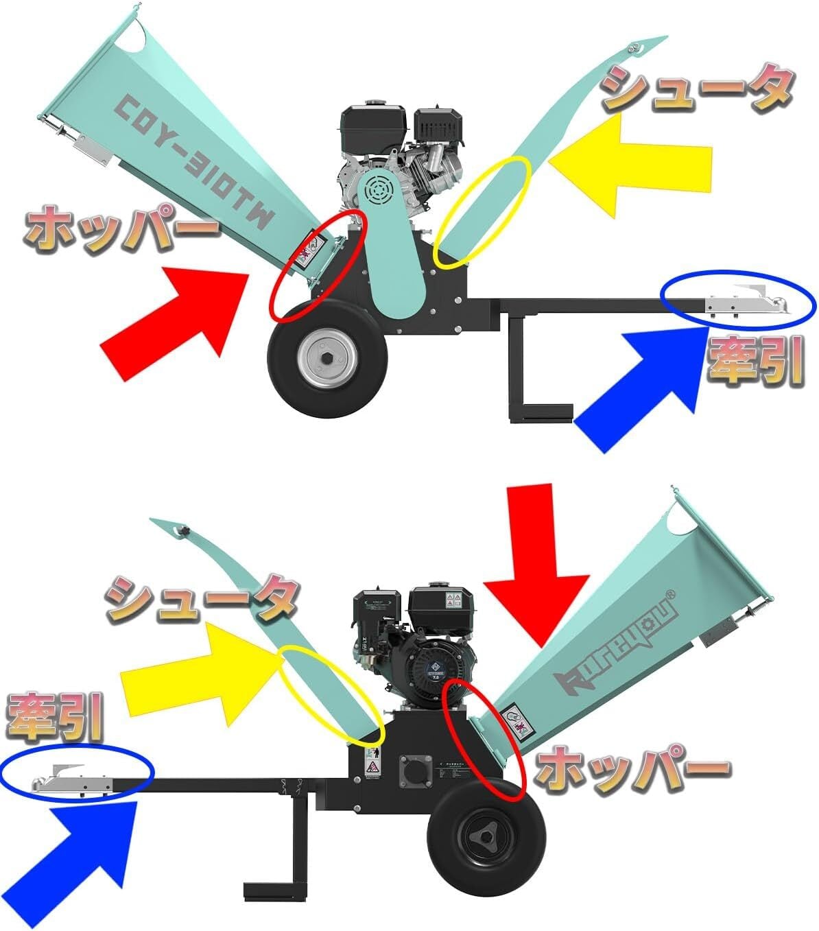 ウッドチッパー Kareyouエンジン粉砕機 木材最大130mm粉砕能力 COY310TB 「個人様・西濃運輸営業所止め」