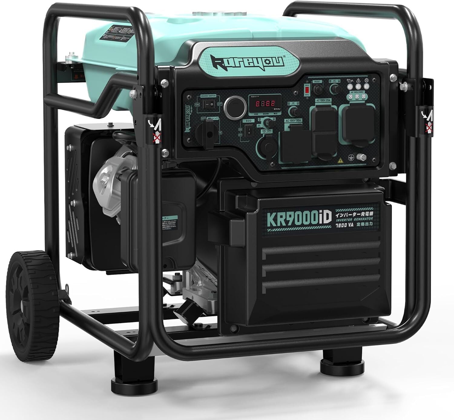 【大径車輪付きで移動性向上】従来の200V発電機よりKR9000iDは重量を半分に減らし、体積も大幅に低減します。8インチEVA発泡ホイールと可倒式ハンドルを採用し、一人でも簡単に移動することが可能です(ホイールとハンドルは自分で取り付ける必要があります)。更に防振構造により使用中のエンジン振動を抑え、振動によるフレームの損傷も軽減し、ハードな使用にも応えます。