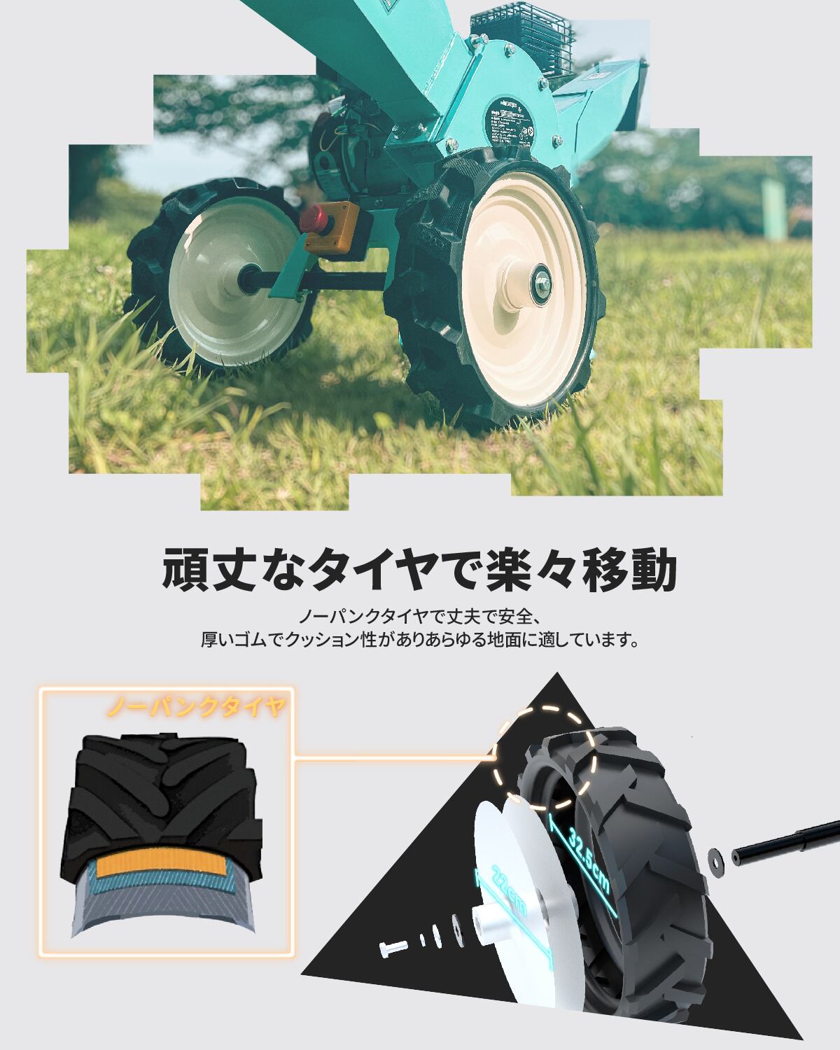 【ユニークな設計】COY-704Mが高強度材料で製造されており、kareyou特有の色・特許も取得しています。小型シュレッダーであるため、全体の乾燥重量は47kgで、堅固な二つの車輪だけで9kgあります。大きなサイズの車輪は動かす時に力を省ける上、道路の制約を受けずに泥道でも移動可能です。165cmの身長にも合う二つのハンドルが装備されており、簡単に移動できます。さらに、実心の支え足(防振マット付き)が装備されているため、機械が動作する際の振動頻度が低減されます。